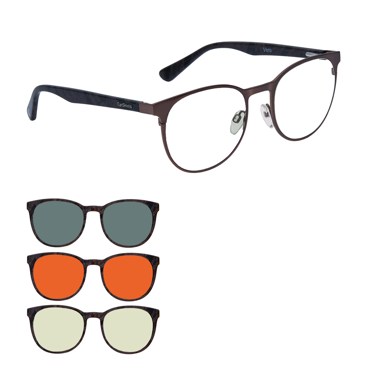 Zestaw okularów korekcyjnych z nakładkami magnetycznymi w wersji Day, Night i Sun.